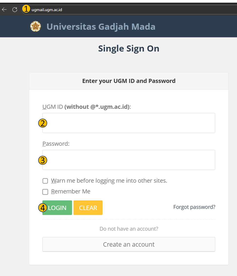 2. Maka akan muncul laman SSO, silahkan isikan UGM ID
