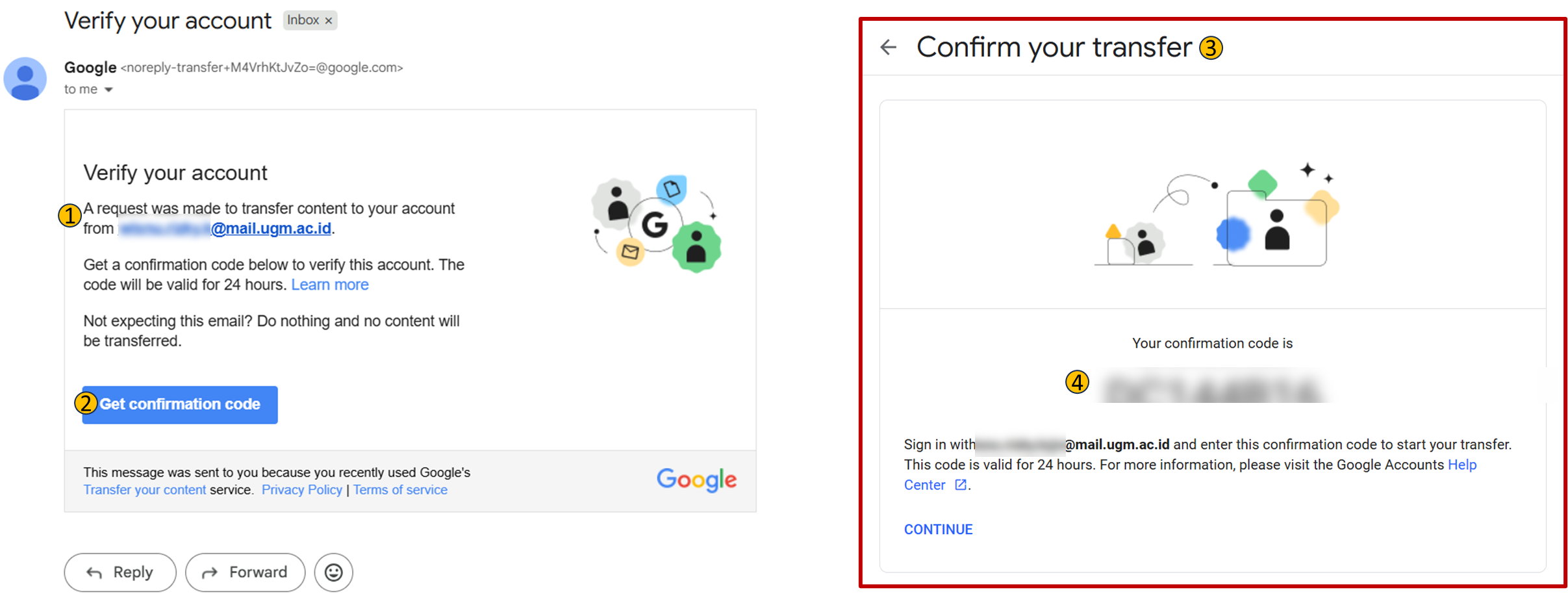 Untuk memastikan semua hasil studi, penelitian ataupun data penting tidak hilang saat masa studi telah berakhir, sangat disarankan untuk melakukan transfer data ke akun Google pribadi (gmail).
